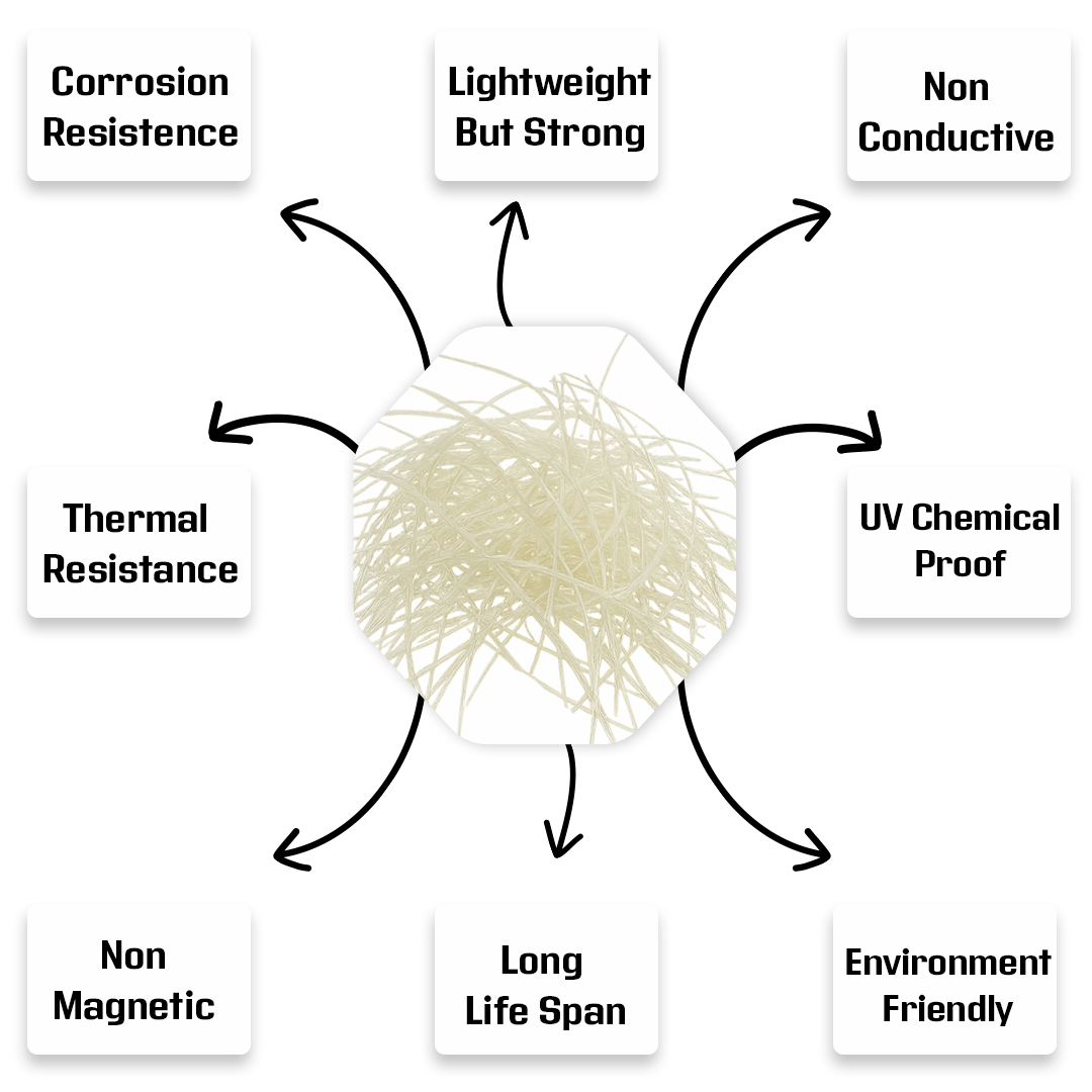 | Material | Thermo-Mechanically Treated Steel (TMT) | Fiberglass/Fiber Glass Composite (FGC) |